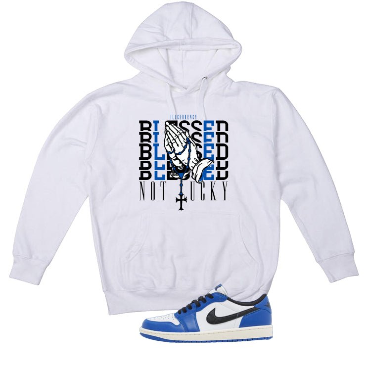 Air Jordan 1 Low OG Game Royal White T-Shirt (Blessed not lucky)| illcurrency