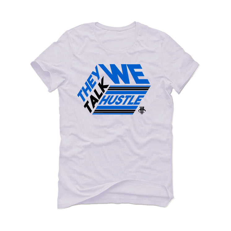 Air Jordan 5 “Racer Blue” White T-Shirt (THEY TALK WE HUSTLE)