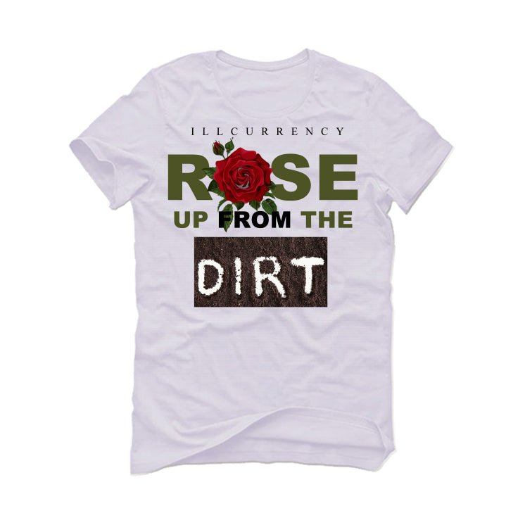 Travis Scott x Air Jordan 1 Low OG "Olive" WMNS | ILLCURRENCY White T-Shirt (Rose up from the dirt)