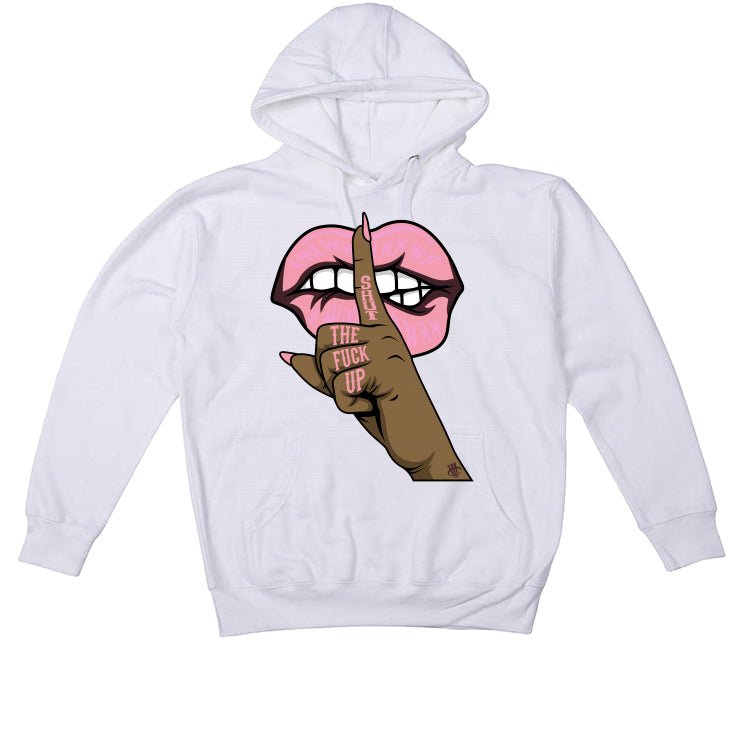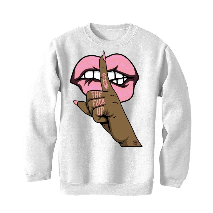 If you want to really show off your Nike Dunk Lows in the "Valentine's Day" 2023 colorway, you should check out these bold and edgy statement t-shirts. They have a unique color scheme inspired by February 14th and enhance the classic basketball sneaker. The low-top features a leather upper with an off-white heel and forefoot overlay, and a deep burgundy foundation. The woven Nike tongue tag, Swoosh, and heel tab all have subtle pink designs. It also has a durable rubber cupsole that brings together retro off-white sidewalls and a maroon rubber outsole for support. This Nike Dunk outfit collection comes in hoodie, t-shirt, and sweatshirt styles, each featuring the phrase "SHUT THE FUCK UP" and a manicured hand with the illCurrency logo making a shushing gesture over lips.