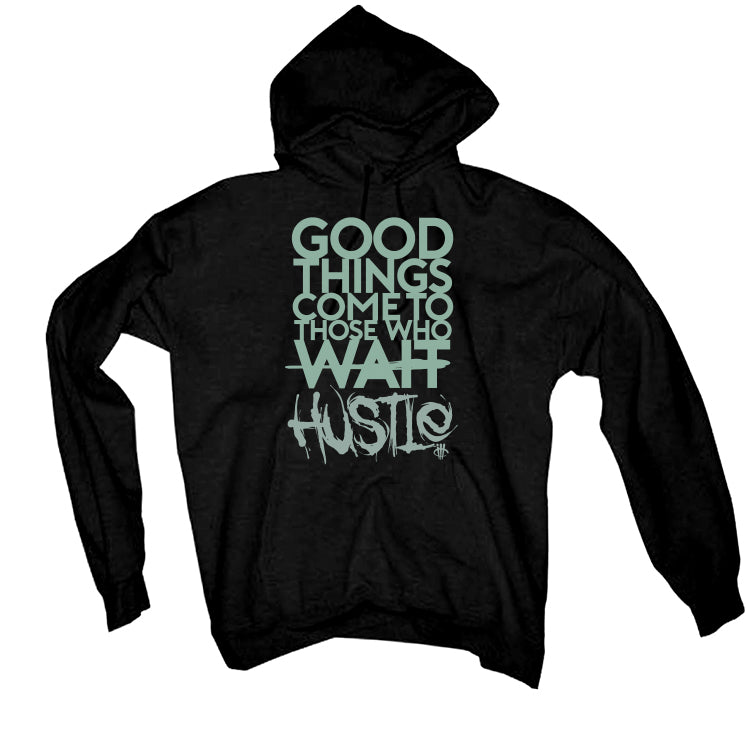 These statement t-shirts, sweatshirts, and hoodies say "GOOD THINGS COME TO THOSE WHO WAIT / HUSTLE" with the word "WAIT" crossed out.