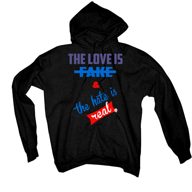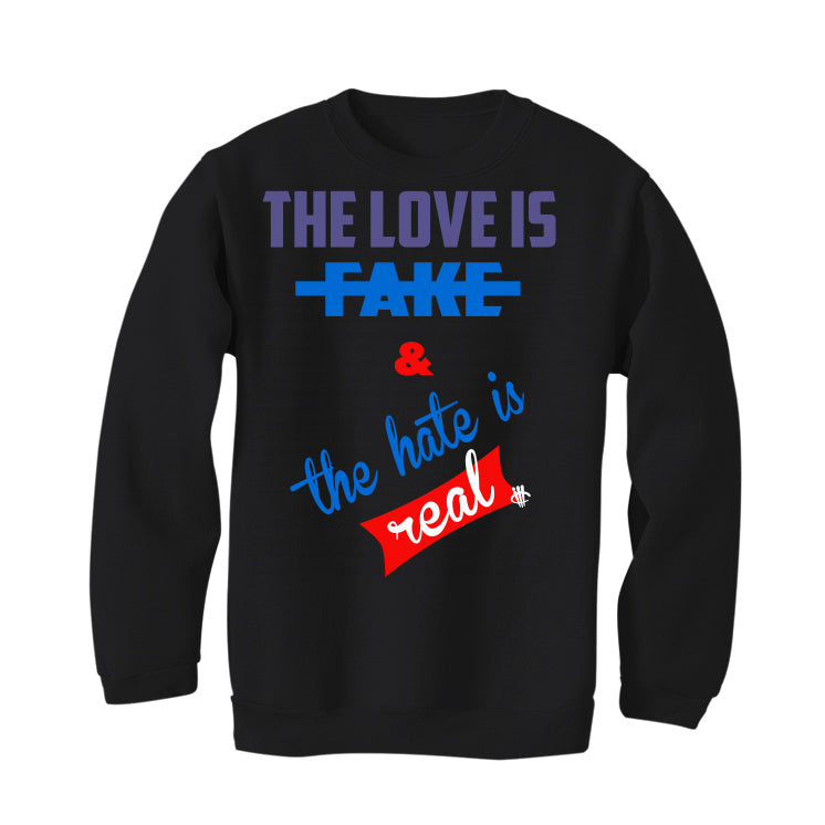 The design of our statement sweatshirts, tees, and hoodies says "the love is fake & the hate is real."