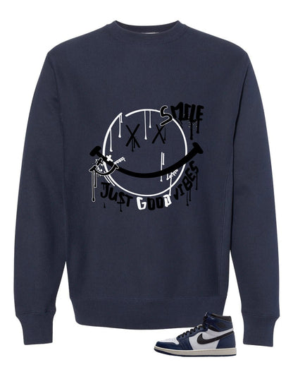 Air Jordan 1 High OG Midnight Navy Navy Blue T-Shirt (Smile)| illcurrency