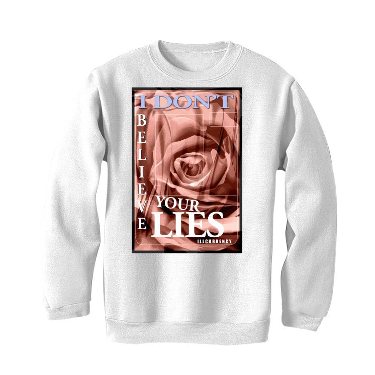 Air Jordan 1 High OG “Skyline” | illcurrency White T-Shirt (I DON'T BELIEVE YOUR LIES) is a premium quality sneakerhead t shirt. It matches with the Air Jordan 1 High OG “Skyline” | illcurrency sneakers.