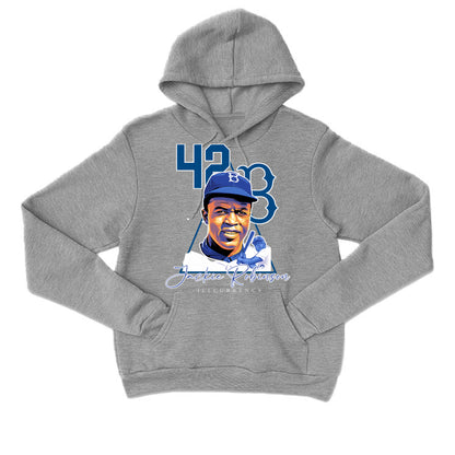 These hoodies, tees, and sweatshirts say "42" and "Jackie Robinson" with illustrations of the baseball player.