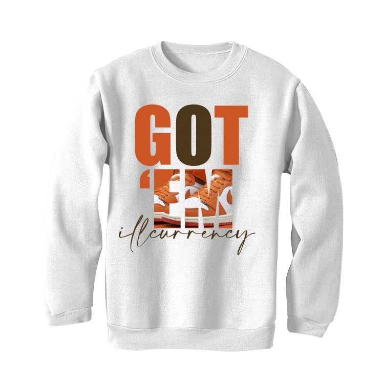 These sweatshirts, t-shirts, and hoodies feature the statement "GOT 'EM / illcurrency" with Air Jordan 1 High OG WMNS “Starfish” image, making a bold statement and serving as a valuable addition to any sneaker collection.