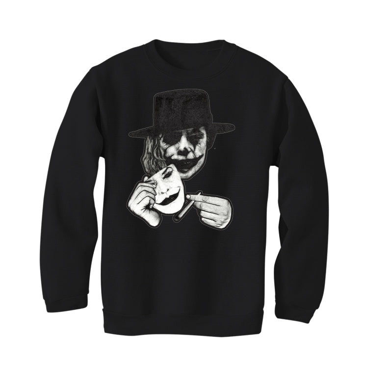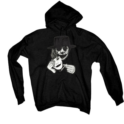 Our sweatshirts, t-shirts, and hoodies have the image of Joker wearing a hat while holding a mask and cigarette graphics printed on fabric.