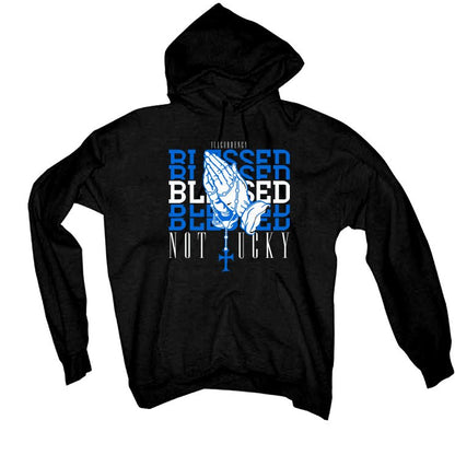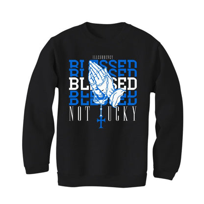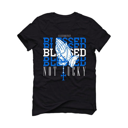 Air Jordan 1 Royal Reimagined | Illcurrency Black T-Shirt (Blessed not lucky)