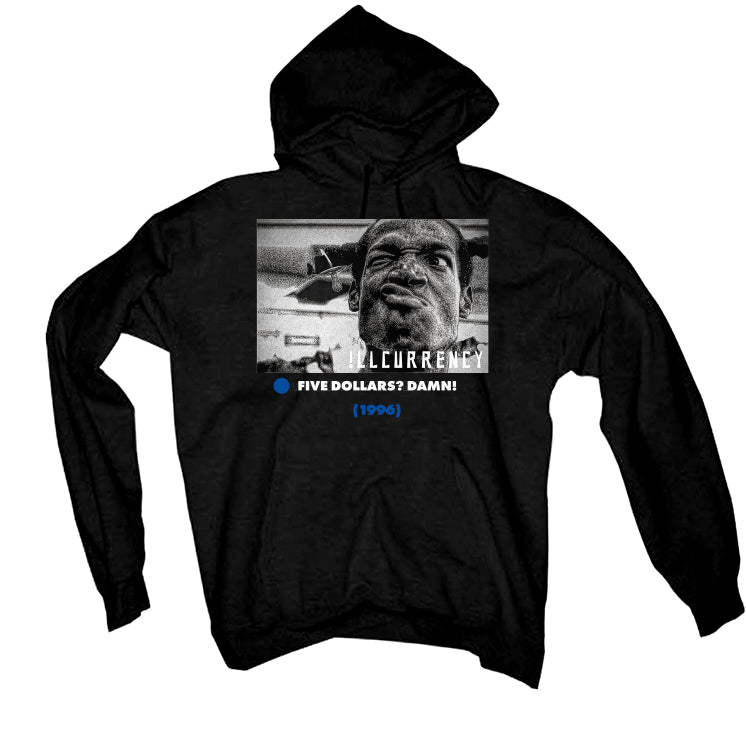 Own the court, own the vibe, with the “FIVE DOLLARS?” Black Air Jordan 1 shirt, the ultimate companion for your Royal Reimagined reign. Tailored for AJ1 Retro High Royal Reimagined enthusiasts, this Air Jordan 1 outfit collection perfectly sync with the vibrant hues of the Sweet Tooth sneakers, ensuring a seamless and stylish blend. Mirroring the '85 original, the sneakers boast a black base, 'Varsity Royal' panels, and iconic branding like the Nike Swoosh and winged basketball emblem. Designed for comfort, the tee features an exclusive "illCurrency" print with the Men in Black character in the AJ1 Royal Reimagined colorway. Elevate your sneaker game with illCurrency's signature style.