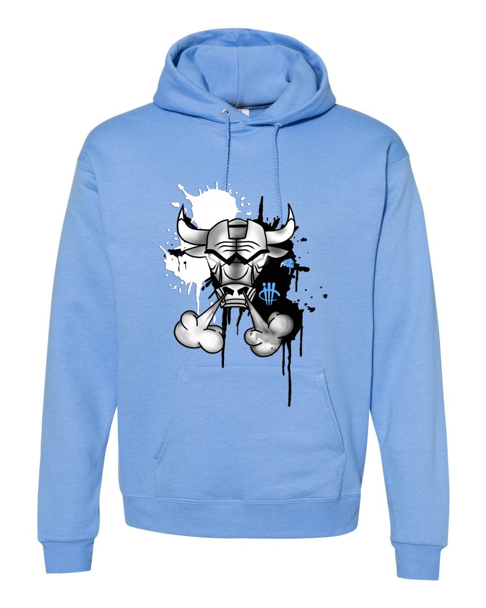 Our UNC Toe Jordan 1 outfit collections include sweatshirts, hoodies, and t-shirts adorned with an illustration of a smoking bull accompanied by the illCurrency logo.