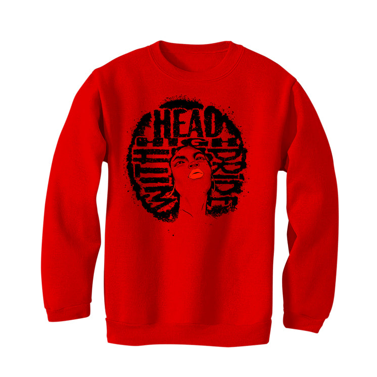 Our t-shirts, sweatshirts, and hoodies say "HEAD HIGH / WITH / PRIDE" spelled out in the afro of a woman with lipstick and earrings.