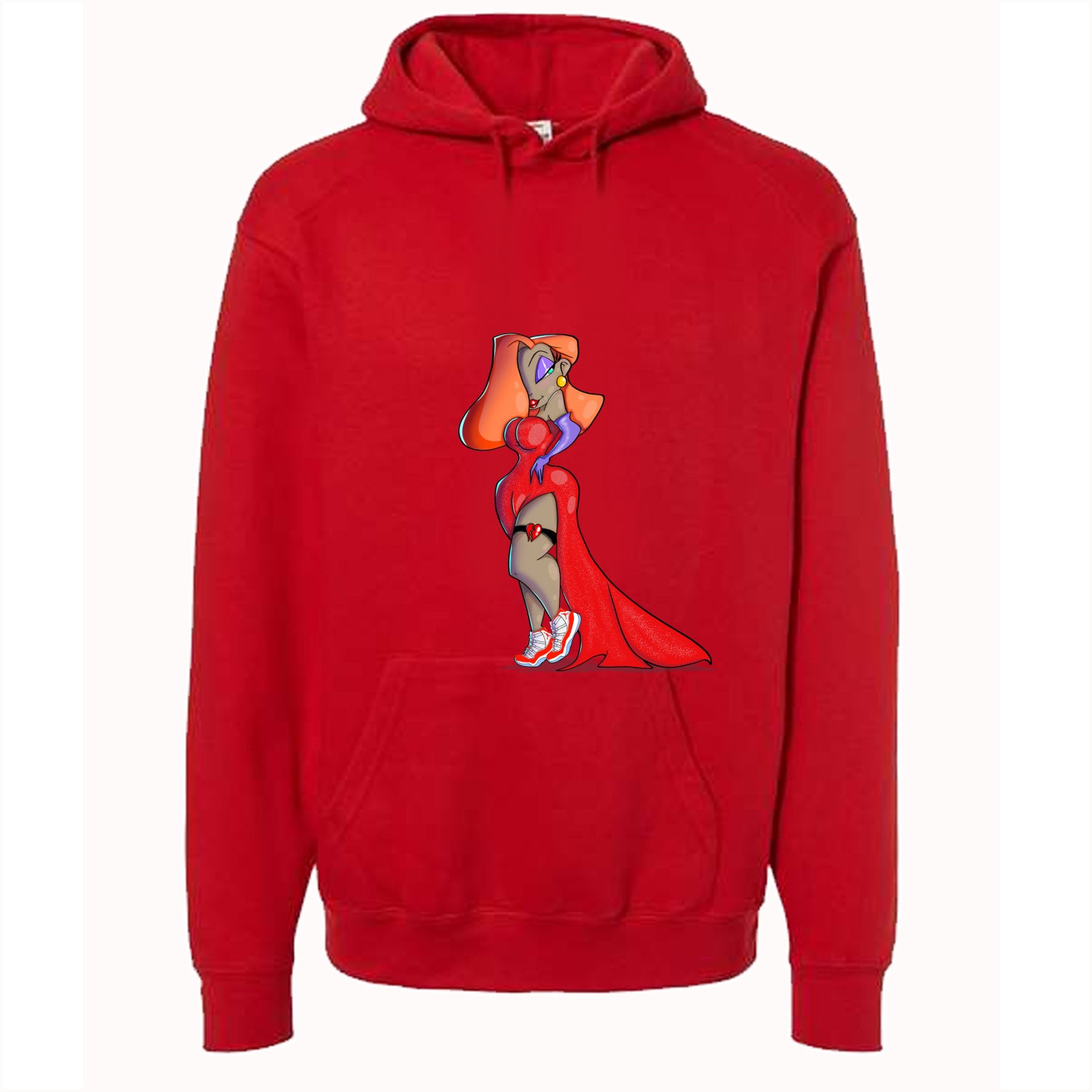 These hoodies, sweatshirts, and t-shirts have Jessica Rabbit wearing a garter with a broken heart and sneakers on them.