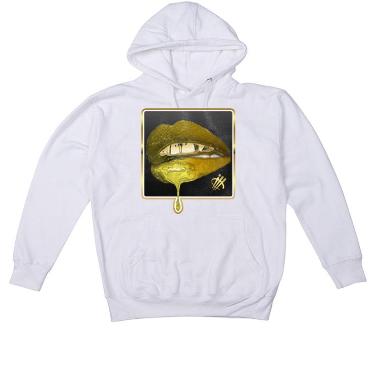 Dripping in gold, the Air Jordan 11 Gratitude White T-Shirt (LIPSTICK) is the perfect match for your AJ11s. Show love for the iconic shoe and MJ's legacy with this stylish shirt, featuring a bold gold lips graphic that embodies the "Thank You" theme of the Air Jordan 11 Gratitude collection. Made with premium cotton for a comfortable fit, this shirt is a must-have for any Jordan fan. Whether you're rocking the latest Air Jordan 11 colorway or your favorite pair of retros, this tee is the perfect way to complete your outfit. Shop illCurrency, your one-stop shop for sneaker-matching apparel, and pair this shirt with your favorite Jordans today!