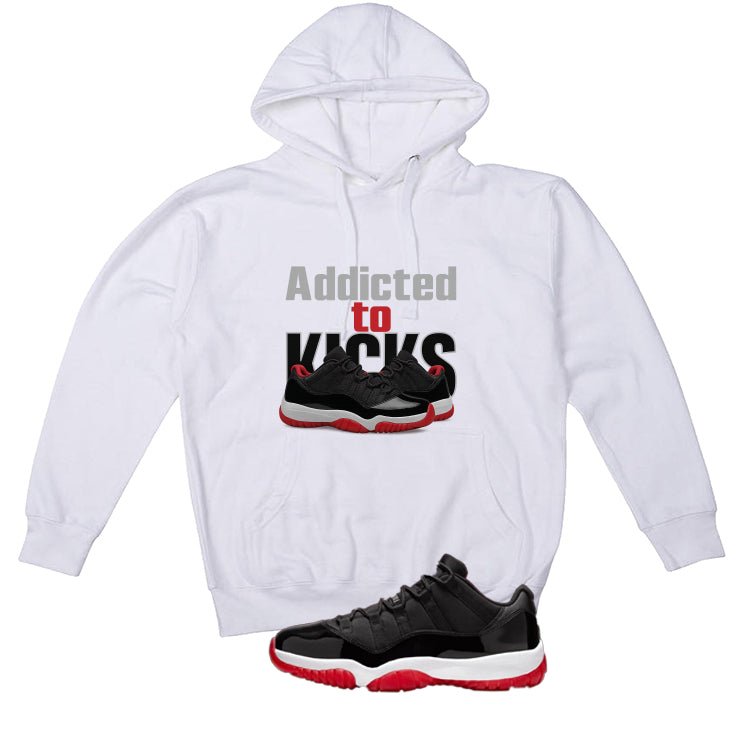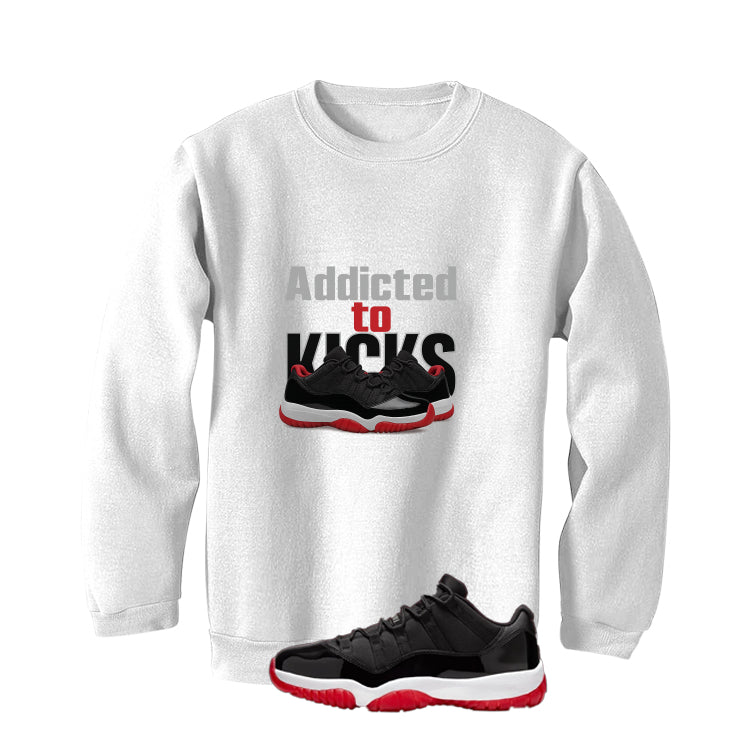 Air Jordan 11 Low Bred White T-Shirt (addicted to kicks)| illcurrency is a premium quality sneakerhead t shirt. It matches with the Air Jordan 11 Low Bred | illcurrency sneakers.