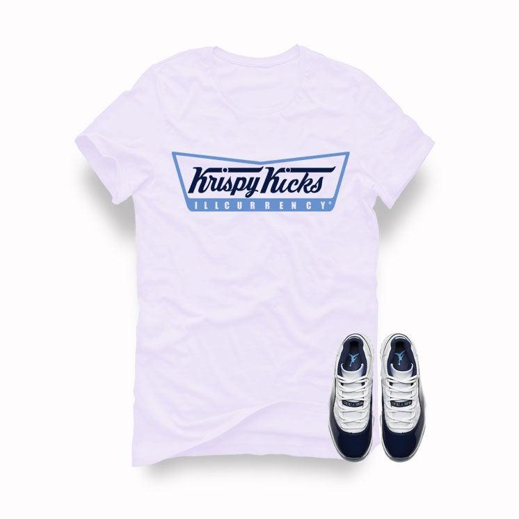 Air Jordan 11 (Midnight Navy) White T (Krispy Kicks) is a premium quality sneakerhead t shirt. It matches with the Air Jordan 11 (Midnight Navy) Sneakers.
