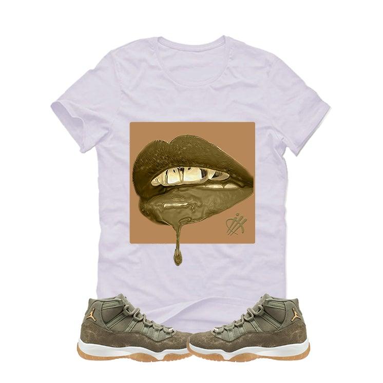 AIR JORDAN 11 “OLIVE LUX” White T (Lipstick) is a premium quality sneakerhead t shirt. It matches with the AIR JORDAN 11 “OLIVE LUX” sneakers.