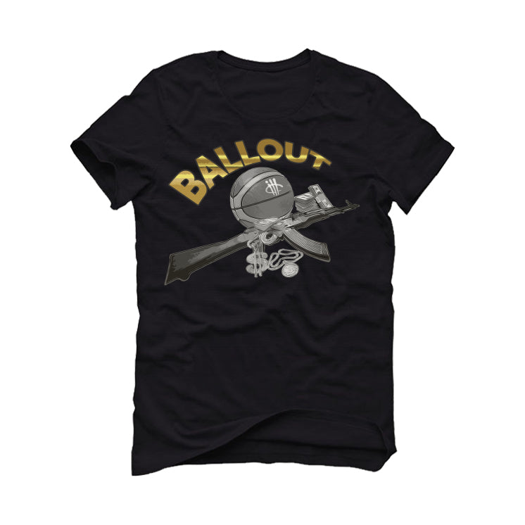 Our sweatshirts, t-shirts, and hoodies with the statement "BALLOUT" with basketball and gun graphics printed on fabric.