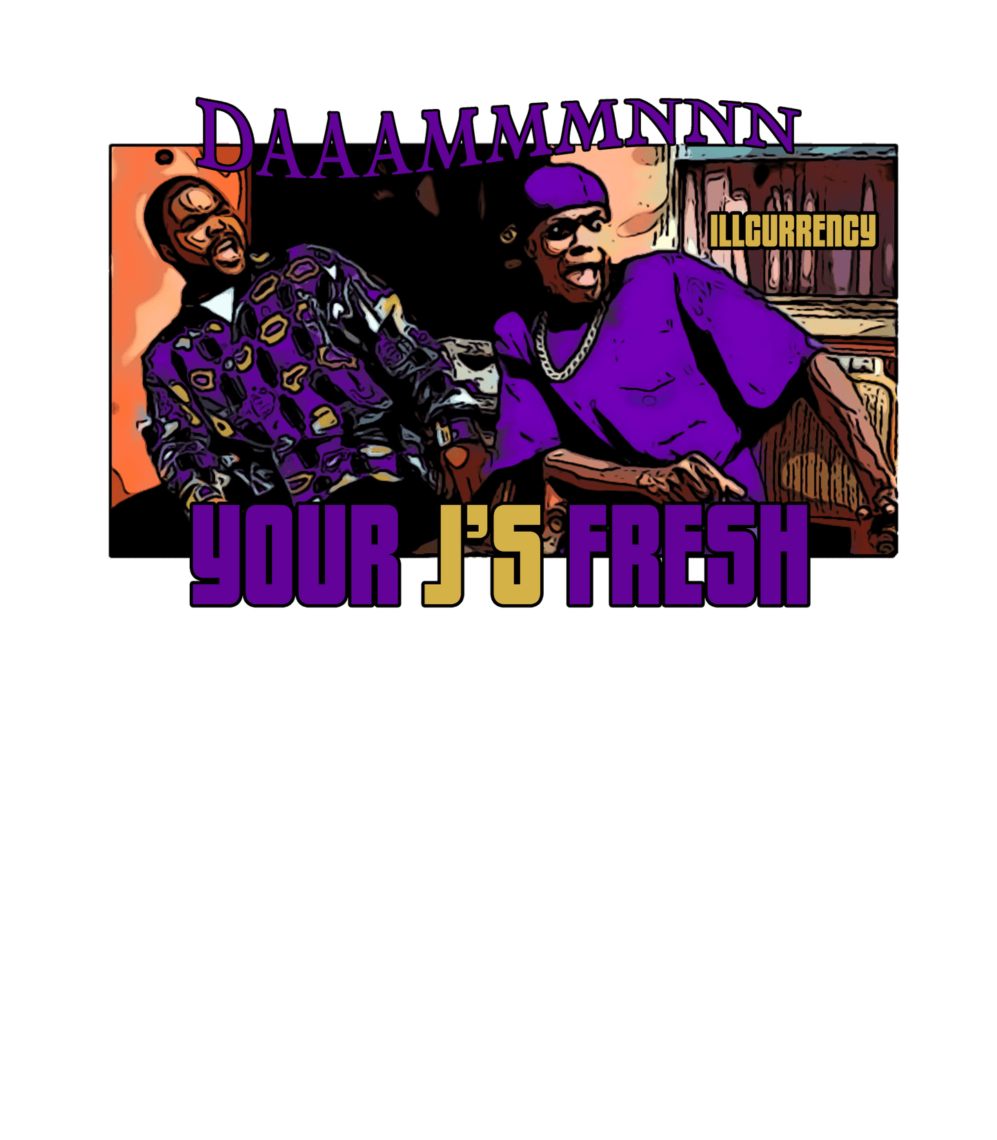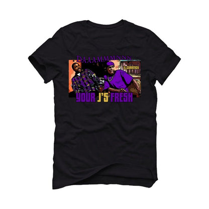 Level up your legendary look with the perfect black shirt to match your Air Jordan 12 Field Purple kicks. This premium fabric shirt elevates your entire outfit beyond just flexing your kicks. It captures the bold essence of the shoe with a subtle nod to the streets with our exclusive "Daaaamnnn Your J's Fresh" graphic. This shirt isn't for the wallflowers, it's for those who crave attention for their impeccable taste. Let your kicks and your confidence do the talking, and turn heads wherever you go. This is your story, your legacy, your perfectly coordinated outfit with a dose of playful hype.