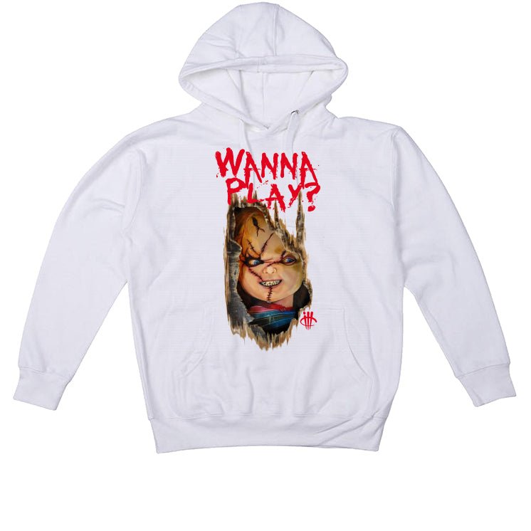 Calling all ballers! Flaunt your Air Jordan 12 OG Cherry fire with this iconic "Wanna Play?" shirt from illCurrency. Crafted with premium fabric, this Jordan 12 shirt kick’s bold graphic echoes the shoe's legendary two-tone combo: crisp white tumbled leather vibes meet a fiery red pebbled toe cap, all topped off with the iconic "Wanna Play?" Chuckie chilling in his Cherry 12s. It's the ultimate match for your kicks, taking your Jordan 12 outfit to the next level. So lace up, rock your Cherrys, and let the game begin. This is illCurrency, where sneaker-worthy apparel meets street-style royalty.