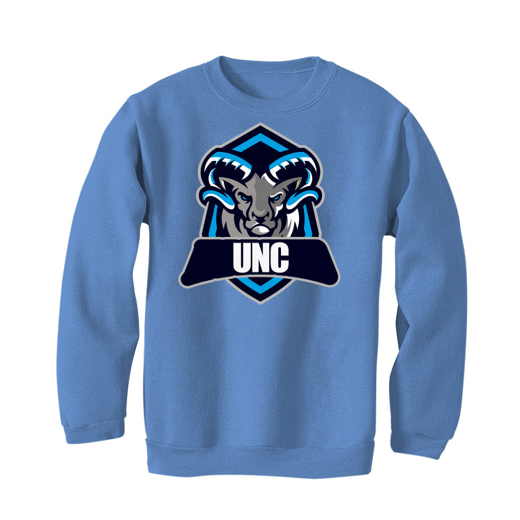 These tees, hoodies, and sweatshirts say "UNC" inside a four-sided shape with a ram head inside a six-sided shape