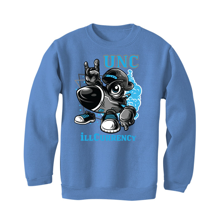 These tees, sweatshirts, and hoodies say "UNC / iLLCURRENCY" with a humanlike rocket, wearing sneakers.