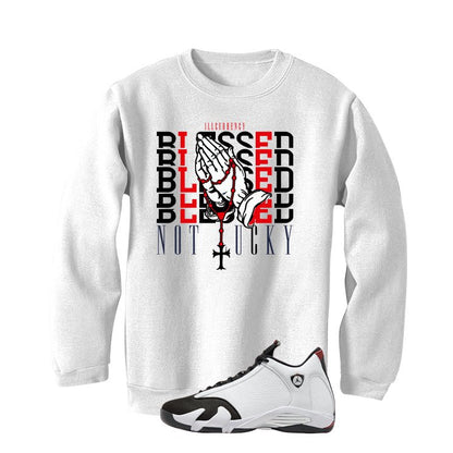 Air Jordan 14 Black Toe White T-Shirt (Blessed not lucky)| illcurrency