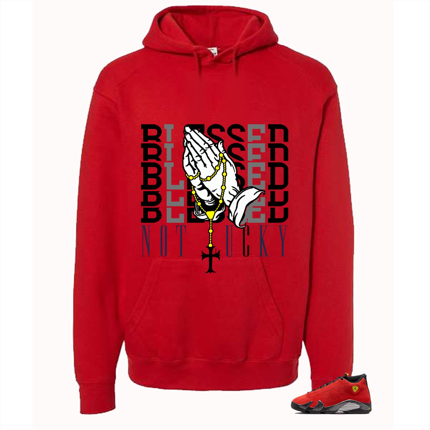 Air Jordan 14 Ferrari Red T-Shirt (Blessed not lucky)| illcurrency