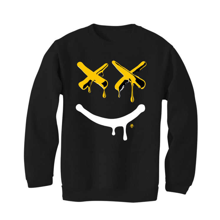 This product comes in a hoodie, t-shirt, and sweatshirt that features happy face drip graphics printed on fabric.