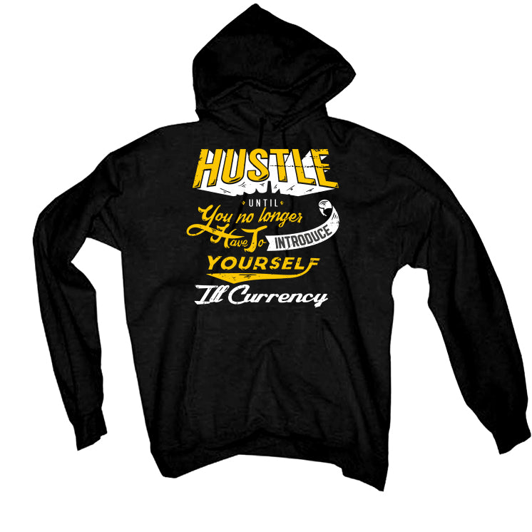 These hoodies, tees, and sweatshirts feature the statement "HUSTLE UNTIL YOU NO LONGER HAVE TO INTRODUCE YOURSELF" in decorative fonts and illCurrency logo.