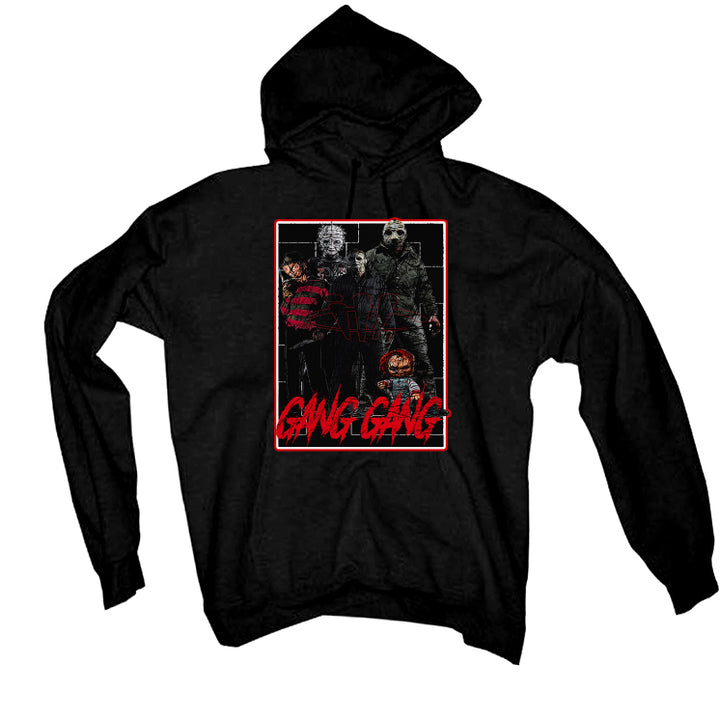 These hoodies, sweatshirts, and tees say "GANG GANG" with Freddy Krueger, Pinhead, Michael Myers, Jason Voorhees, and Chucky.