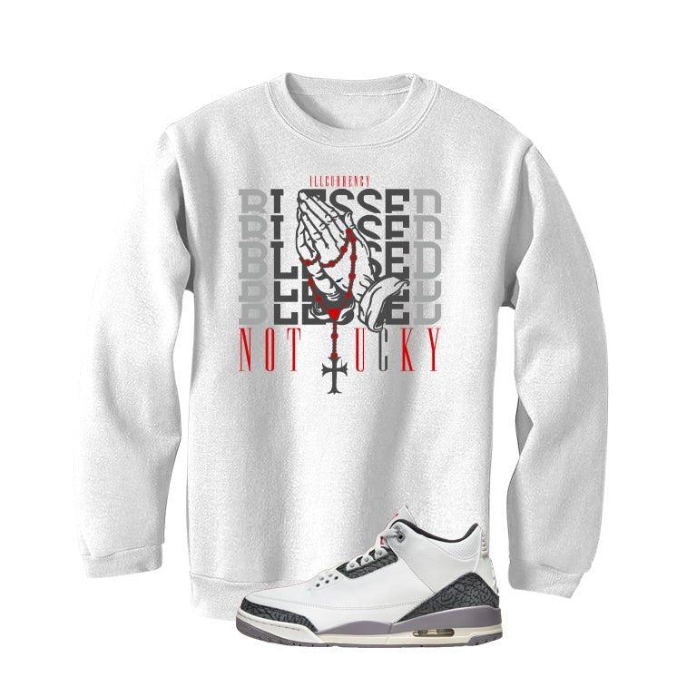 Air Jordan 3 Cement Grey White T-Shirt (Blessed not lucky)| illcurrency