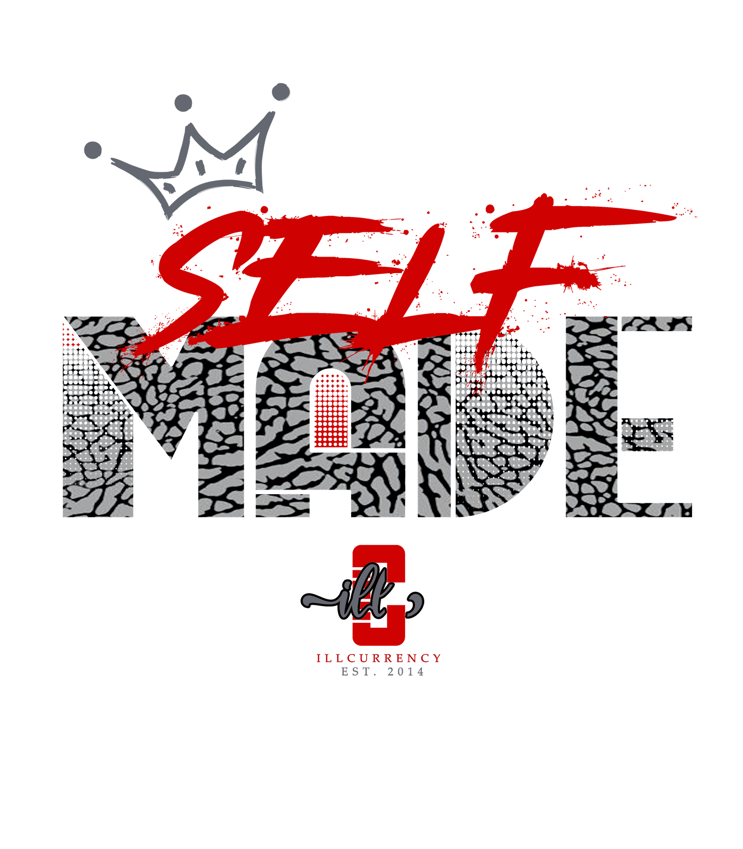 Our sweatshirts, hoodies, and t-shirts include the statement "SELF MADE / ILLCURRENCY / EST. 2014" in different fonts with a crown above and illCurrency logo below.