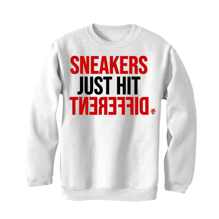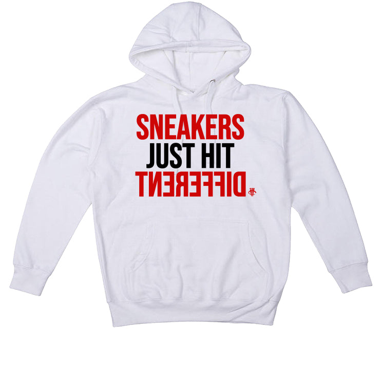 These tees, hoodies, and sweatshirts say “SNEAKERS JUST HIT DIFFERENT" with the last word written backward.