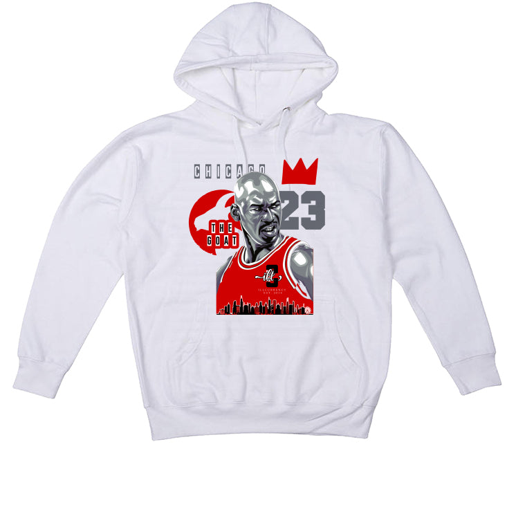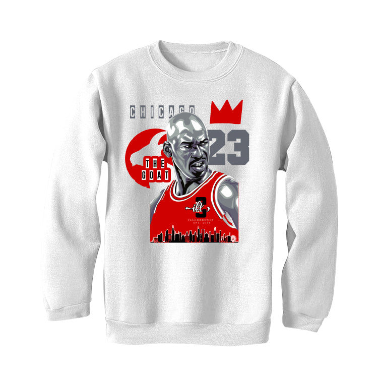 We offer a range of sweatshirts, hoodies, and t-shirts that feature "CHICAGO / THE GOAT / 23 / ILLCURRENCY" with the silhouette of a goat and crown, and an illustration of Michael Jordan.