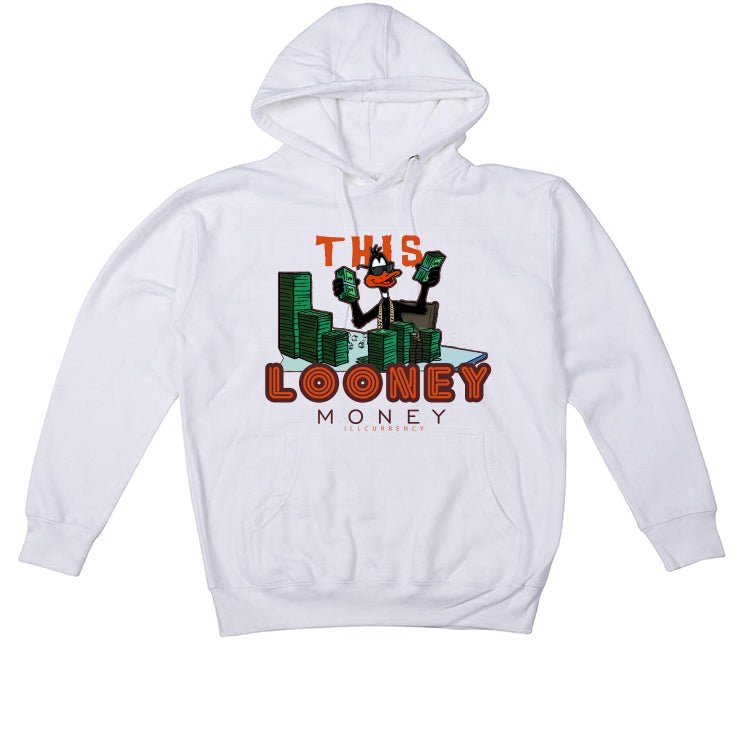 Looking for some unique threads to complement your Air Jordan 3 GS "Mars Stone" kicks? Check out our cool statement Jordan 3 Mars Stone collection, with edgy designs that pay homage to the '88 release. The vintage tumbled leather in crisp white covers the base of the sneaker, while an eye-catching orange adds a pop of color to the upper. The iconic Jumpman logo on the tongue and the black outsole provide the classic touch, while the "Sail" accents on the back tab, midsole, and suede mudguard add a cool contrast. The main feature of these kicks is the dark grey perforated collar, elephant print overlays, and sectioned midsole. And if you want to make a statement, our t-shirts, hoodies, and sweatshirts featuring Daffy Duck rocking some shades, chains, and bundles of cash will definitely do the trick. Show off your Looney Money attitude and level up your sneaker game with our gear.