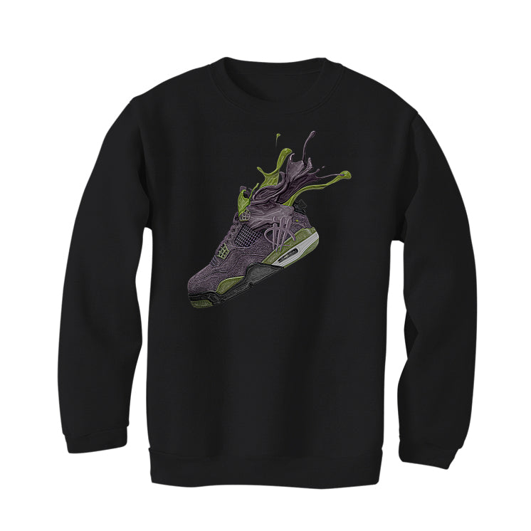 Experience undeniable style with our black cotton apparel, perfectly complementing the iconic Air Jordan 4 "Canyon Purple". This retro sneaker features a vibrant purple shaggy suede upper with speckled green accents on the eyelets and midsole. The black tongue tag boasts an orange Jumpman, while the molded wings, heel tab, and rubber outsole are all black. The midsole, which houses a Nike Air unit, contrasts in crisp white. Our t-shirts, hoodies, and sweatshirts showcase a striking image of the Jordan 4 Canyon Purple adorned with a splash of liquid and our illCurrency logo. Elevate your wardrobe with this exclusive piece.