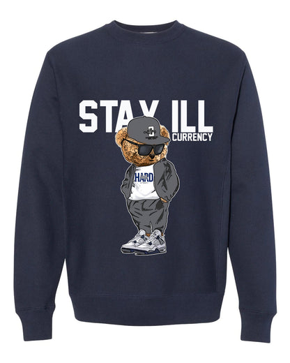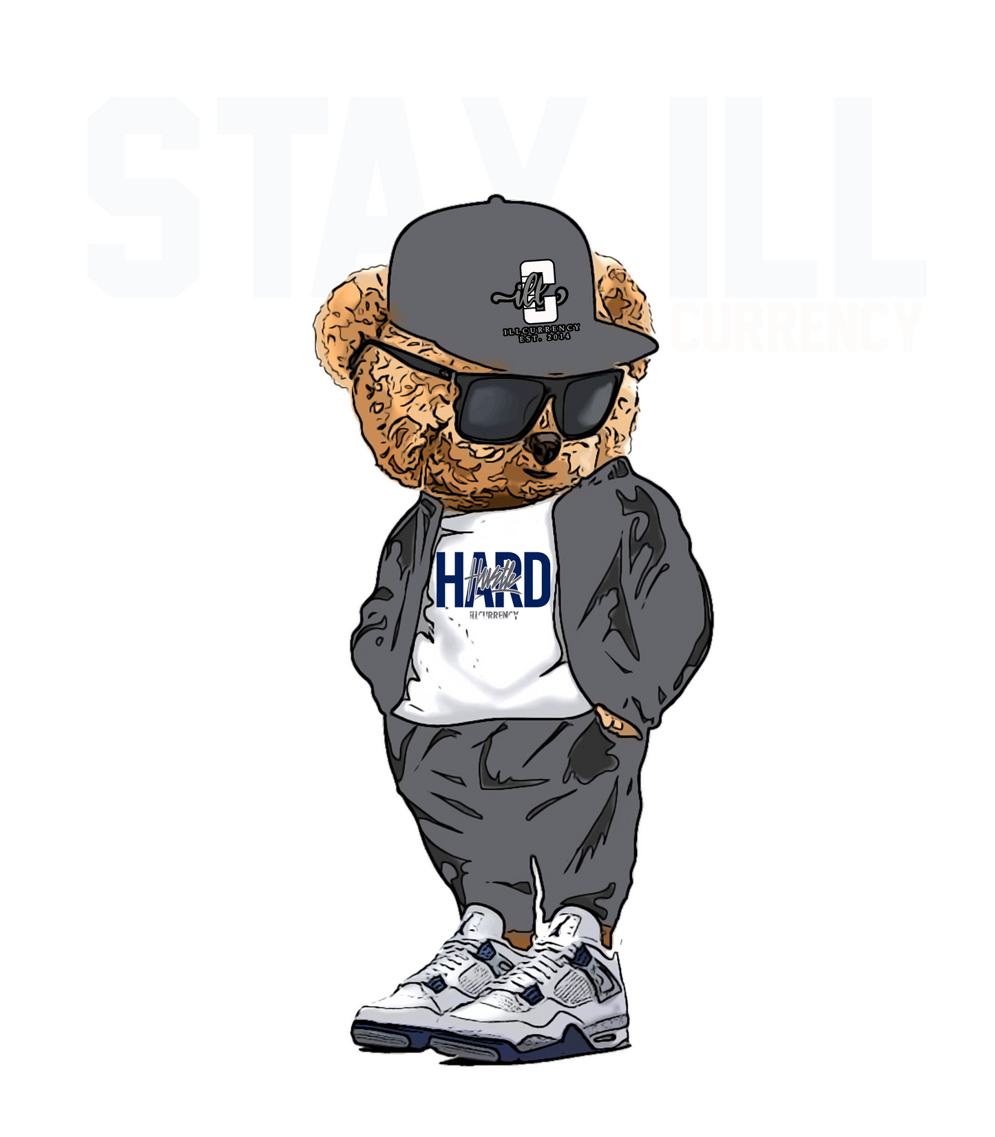 With the phrase "stay ill" in the backdrop and a bear sporting the Air Jordan 4 "Midnight Navy" shoes, our tops are the ideal complement to your sneaker collection.