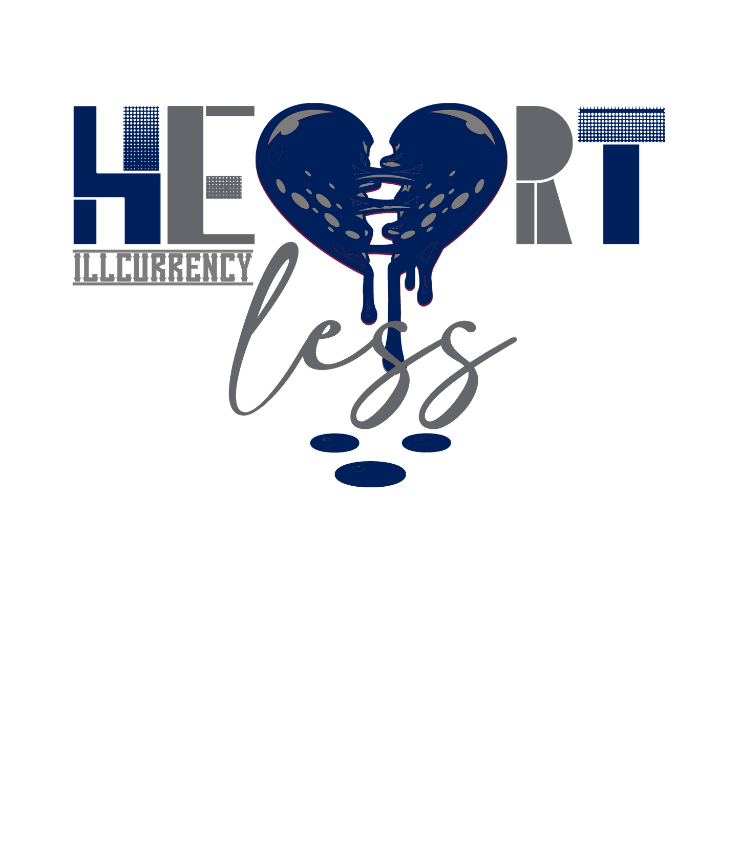 These tees, sweatshirts, and hoodies feature awesome artwork of a dripping, broken heart and the word "heartless" in different fonts.