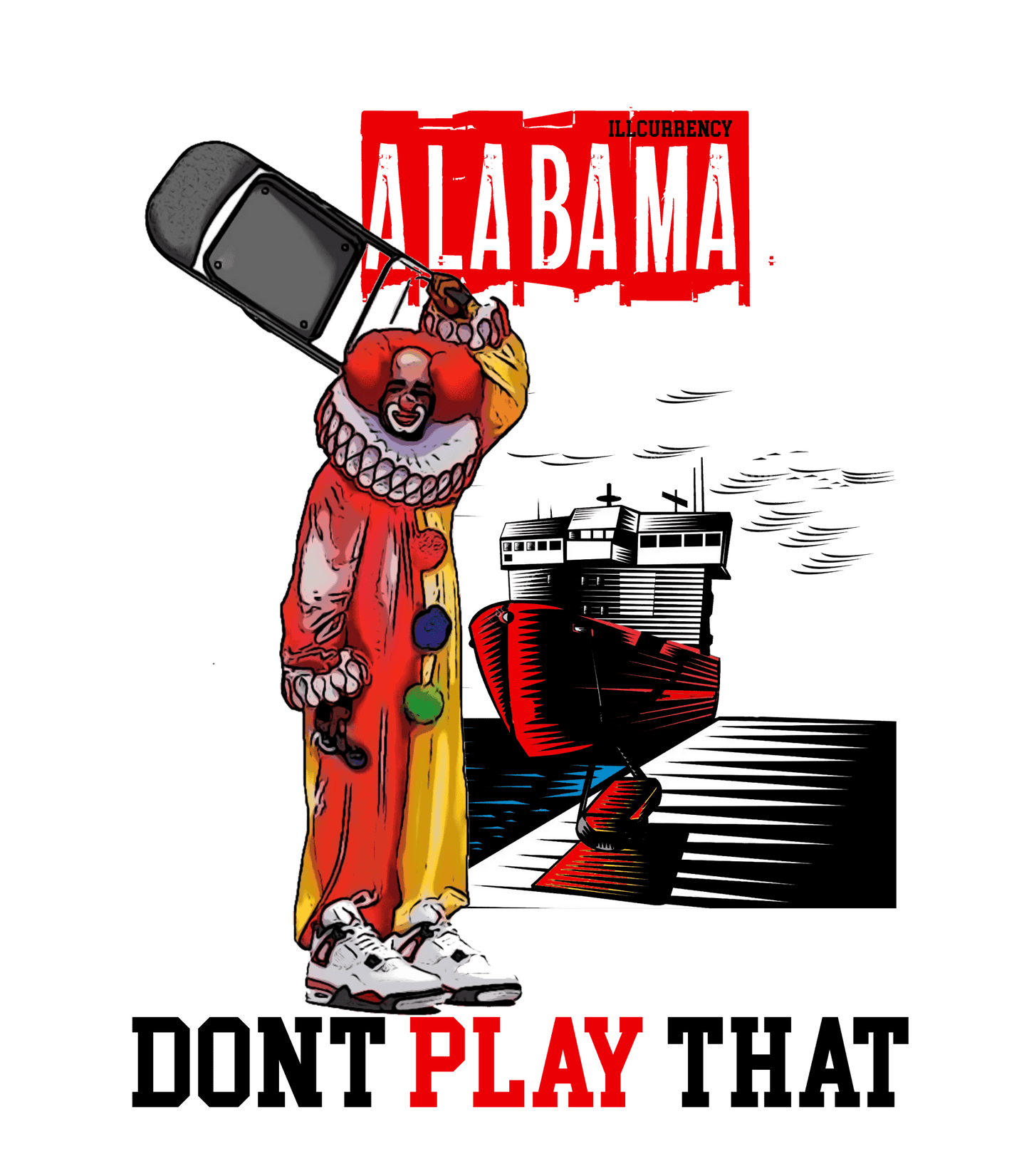 Channel your inner icon and rock your "Red Cement" Air Jordan 4 outfit with illCurrency! This crisp white shirt complements the shoe's fiery accents perfectly, honoring the AJ4 legacy with classic details. But we added a twist: a bold "Alabama Don't Play That" graphic with a streetwise clown, inspired by the sneaker's colorway. This shirt isn't just an Air Jordan 4 shirt, it's a statement piece for those who push boundaries. Choose your perfect matching sweatshirt, hoodie, or shirt and complete your look with confidence.