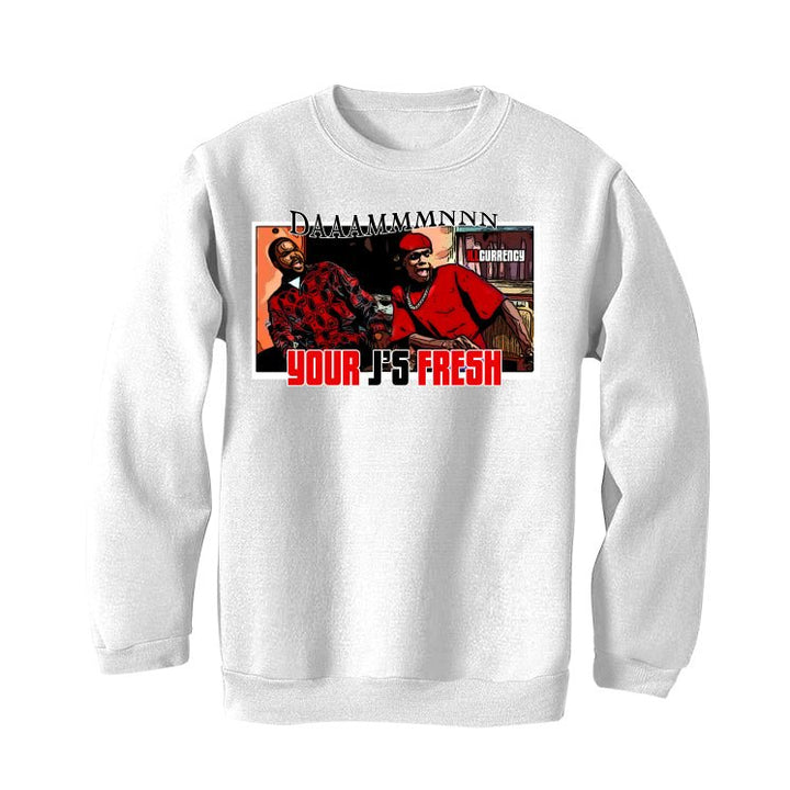 Unleash your inner hypebeast and level up your Air Jordan 4 "Red Cement" outfit with illCurrency! This crisp white shirt complements the shoe's fiery accents, honoring the AJ4 legacy with classic details. But we added a twist: a bold "Daaaaammmmnnnnn" graphic in your sneaker's colors. This shirt isn't just an Air Jordan 4 shirt, it's a statement piece that lets the world know your Jordans are fire. Choose your perfect match (sweatshirt, hoodie, or shirt) and complete your look with confidence.