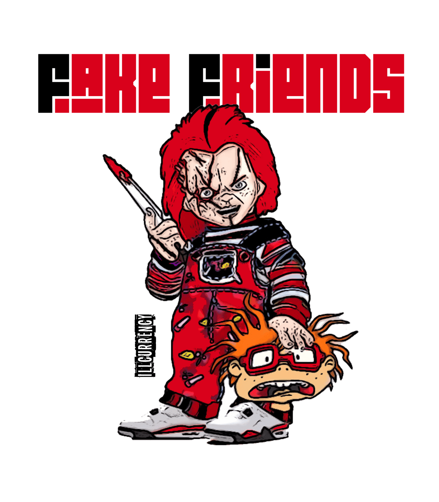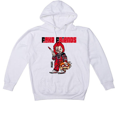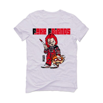 Channel your inner horror movie vibes with the illCurrency "FAKE FRIENDS 2" shirt, the perfect match for your Air Jordan 4 "Red Cement." This crisp white shirt features a killer graphic with Chucky rocking some AJ4s, mirroring the fiery accents of your kicks. The clean white fabric complements the iconic color scheme of your Jordans, ensuring they take center stage. Whether you're weeding out the fakers or just chilling in style, this Air Jordan 4 shirt injects a dose of edgy energy into your entire outfit.