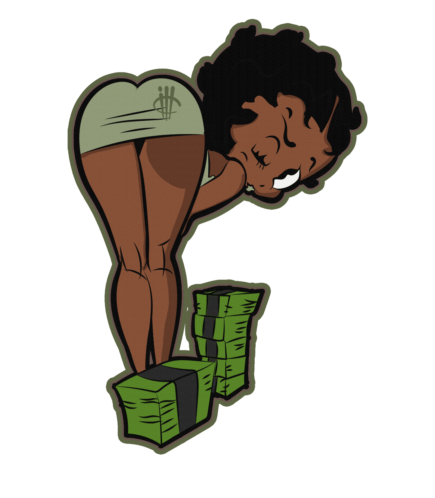 Our collection includes standout Jordan 4 shirts, sweatshirts, and hoodies featuring an illustration of Betty Boop dressed elegantly with the illCurrency logo; she is playfully bending over while winking amidst piles of cash.