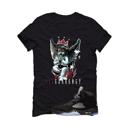 Air Jordan 5 Black Metallic Reimagined Black T-Shirt (Graffiti Angel)| illcurrency
