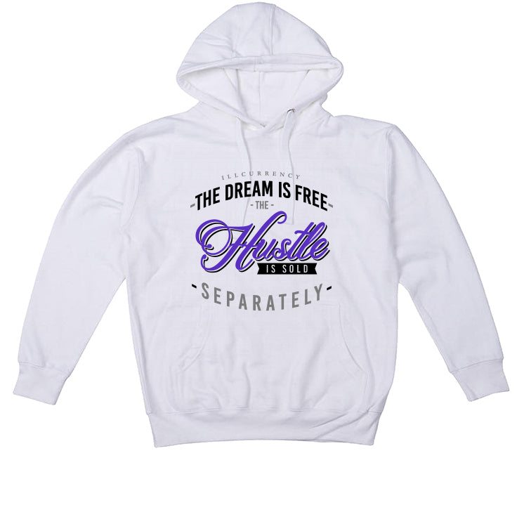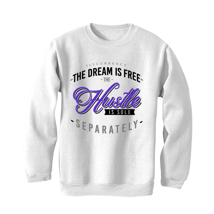 This product comes in a hoodie, t-shirt, and sweatshirt that features the phrase "ILLCURRENCY / THE DREAM IS FREE / THE HUSTLE IS SOLD SEPARATELY" with decorative font and ribbon shape.