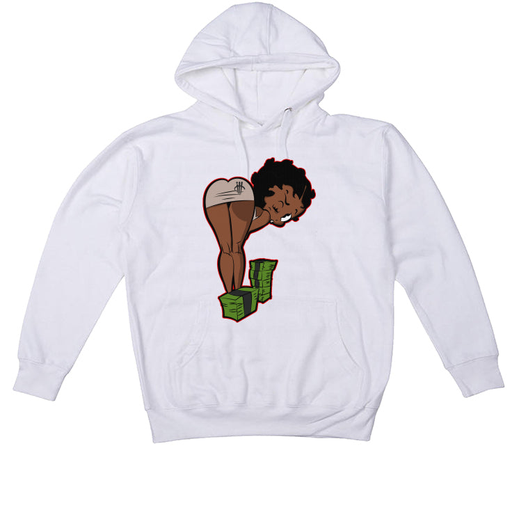 Jazz up your sneaker style with our all-white cotton gear. It will take your Air Jordan 5 Low PSG to the next level. The Air Jordan 5 Retro Low "PSG" features a grey suede upper, matching laces, and a translucent mesh panel, along with a tricolor "paname" tag and red lace toggles. The heel boasts a red wax seal with the Paris Saint-Germain logo, while the tongue showcases a blue Jumpman logo against a grey backdrop. The midsole is made of polyurethane and displays a spiky design in grey and black, while the co-branded rubber outsole is a striking icy blue. Our selection of hoodies, t-shirts, and sweatshirts feature bold Betty Boop artwork, wearing a dress and winking while surrounded by stacks of cash.