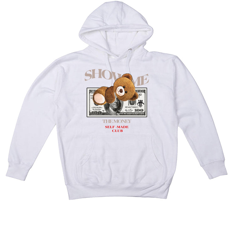 Attention all sneaker enthusiasts! Check out these bold and distinctive tops, specifically designed to complement the Air Jordan 5 Low PSG (Paris). Jordan and Paris Saint-Germain have once again joined forces for an updated version of the AJ5. The "PANAME" branding (a nickname for Paris) is prominently featured throughout, while the icy outsole showcases a collaboration of the Jumpman and PSG logos imprinted on the heel. Combining the best features from the original - such as lace toggles, premium leather, and the iconic spiky midsole - with the elegance of Parisian fashion, this collection exudes sought-after clout with every stride. Our t-shirts, sweatshirts, and hoodies are emblazoned with the phrase "SHOW ME / THE MONEY / SELF-MADE CLUB" and a teddy bear sitting atop a $100 bill, all adorned with the illCurrency logo.