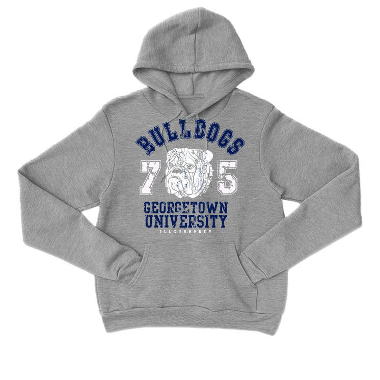 These statement tees, sweatshirts, and hoodies say "BULLDOGS / 75 / GEORGETOWN UNIVERSITY" with a bulldog illustration.