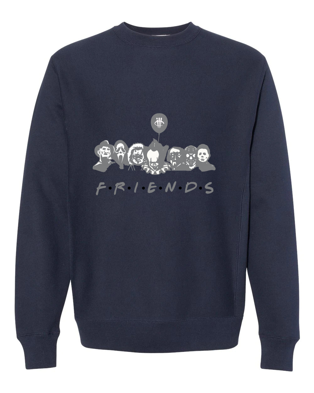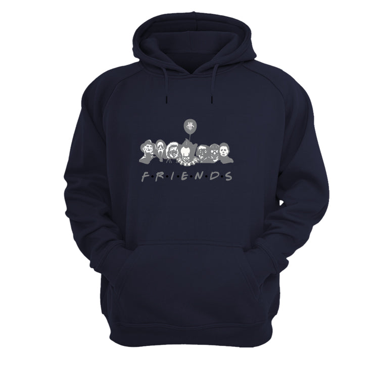 Our hoodies, t-shirts, and sweatshirts are printed with the "FRIENDS” logo, Freddy Krueger, Ghostface, Chucky, Pennywise, Jigsaw, Jason Voorhees, and Michael Myers.
