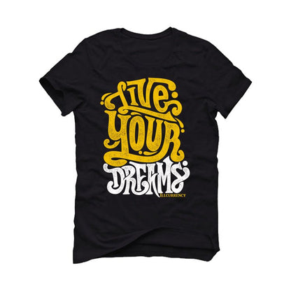 Air Jordan 6 Yellow Ochre | illcurrency Black T-Shirt (LIVE YOUR DREAMS)