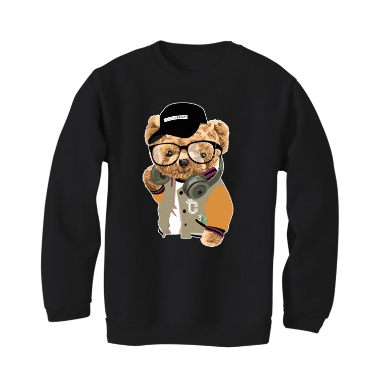 Our t-shirts, sweatshirts, and hoodies are printed with a Teddy bear wearing a cap that says "ILLCURRENCY," glasses, headphones, and a letterman jacket with money in one pocket.